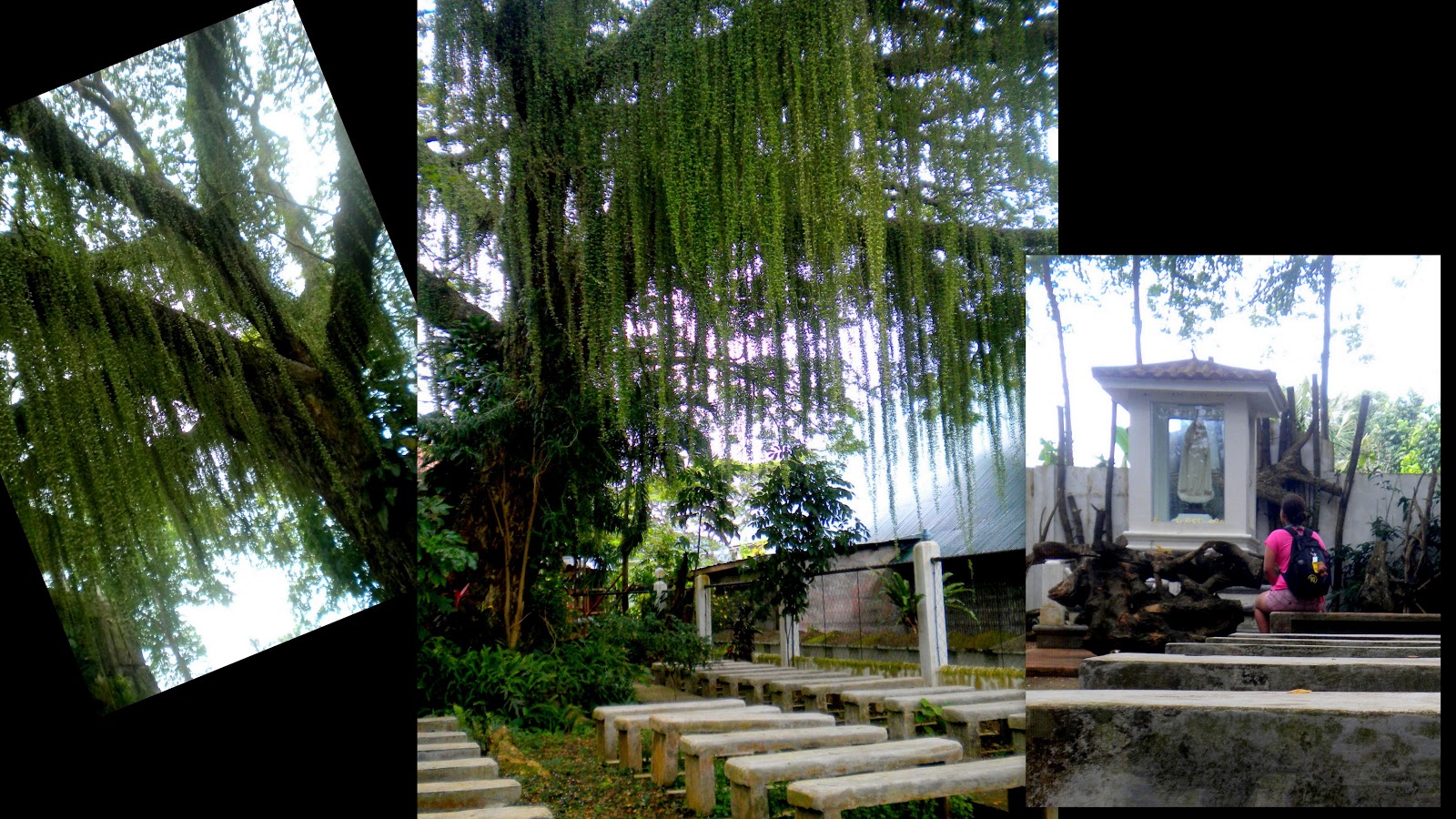 To the right side of the church is an open chapel. Devoted to Sto. Rosario, the image of the Lady of the Rosary is encased and transfixed in front of a old tree draped in vines. Stone benches lined up on the grassy earth and a comforting sound of the church bells framed the already solemn ambiance.