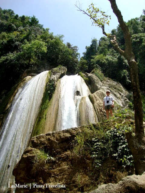 It has a large plunge pool ideal for swimming. The water is clear and cold as it makes it’s way downstream through large boulders framing the plunge pool. This one in particular is used as diving/jumping spot for locals to the plunge pool. LotLot braved and climbed up that rock and was a perfect shot to take.