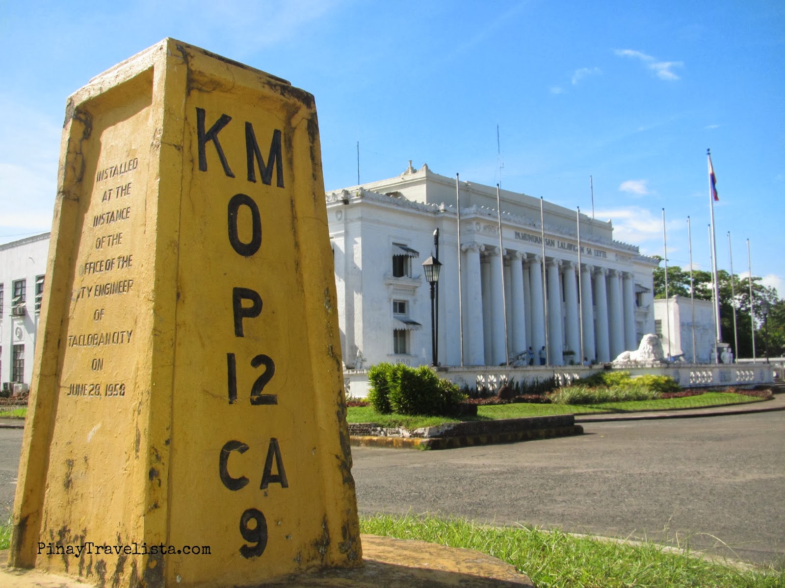 The Leyte Provincial Capitol stand massively proud in white paint, and wall scultures of historical happenings. It was constructed in 1944, and was the temporary seat of the Philippine Commonweath Government Pres. Osmeña landed at Palo with the American troops. At the intersection of the road leading to the Provincial Capitol is the Kilometer Zero or KM 0 for the Leyte, where all the “kilometerage in the island of Leyte, and in the cities of Tacloban, and Ormoc are reckoned from this kilometer post.”