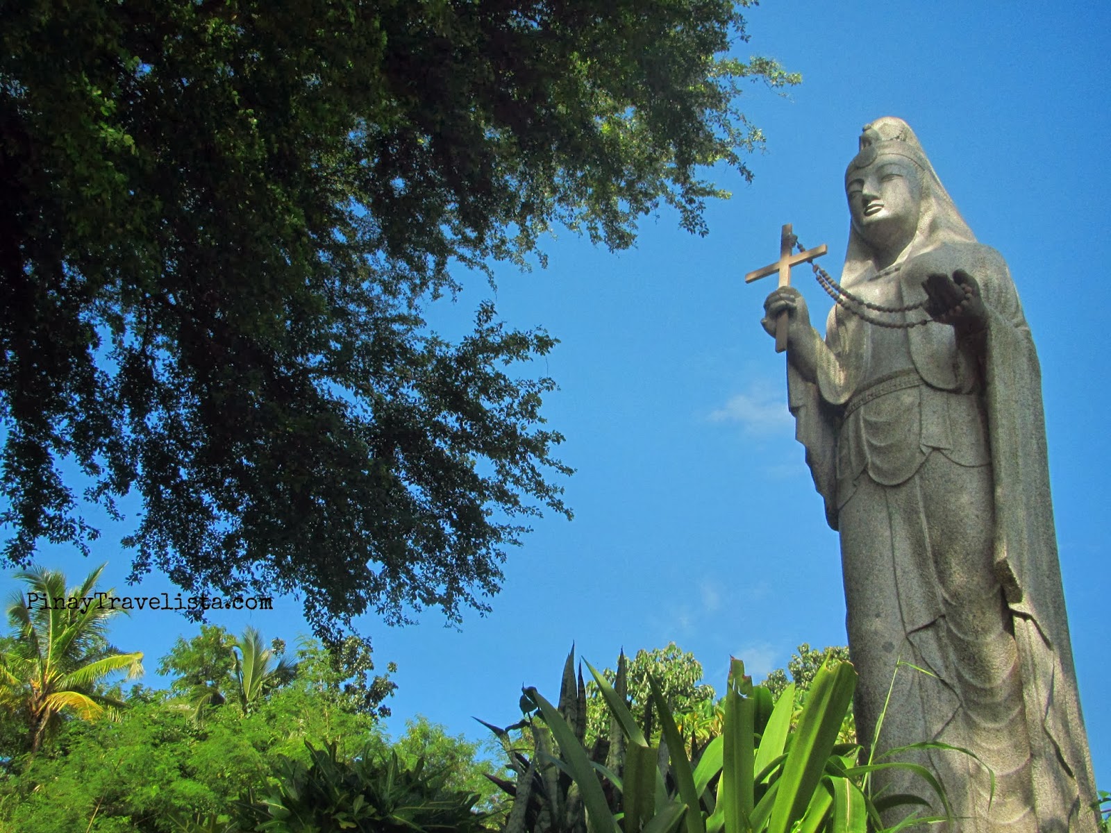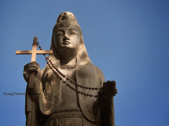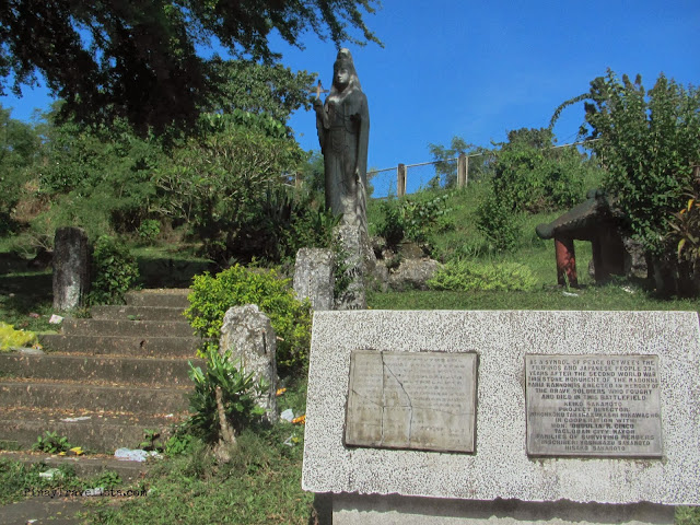 Fenced in bars of steel, and brick columns is the monument of the Madonna of Japan. I was not actually expecting this along my short trip around town. It was the driver who brought me to the place, and said that I could take my time around because it was quiet there. The image of Madonna of Japan is also known as Maria Kannon, and a gift from the Japanese people to the Philippines, as a symbol of peace, and friendship among two nations. It is stands on an open enclosure near the Modern Day Penitence at the Calvary Hill that is overlooking the San Juanico Bridge. I was not able to go closer to the the 18 foot statue of the Sacrad Heart of Jesus at the Modern Day Penitence, and its life-sized 14 Stations of the Cross because it was under repainting then.