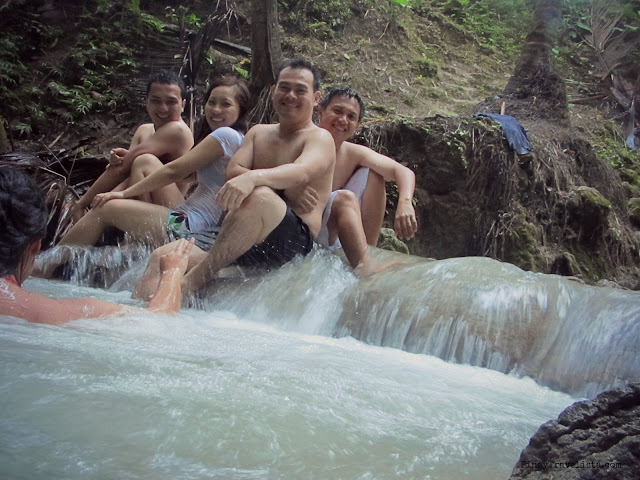 Lugnason Falls is a cluster of limestone rocks from wide opening water drop. Right after the trail there is landing area where you can see the falls, and it’s water basin from above. You need to get down on a steep man-made steps to reach the water basin. On that elevated landing area though, are several benches for family to gather, and parents to watch the young ones enjoy their swim.